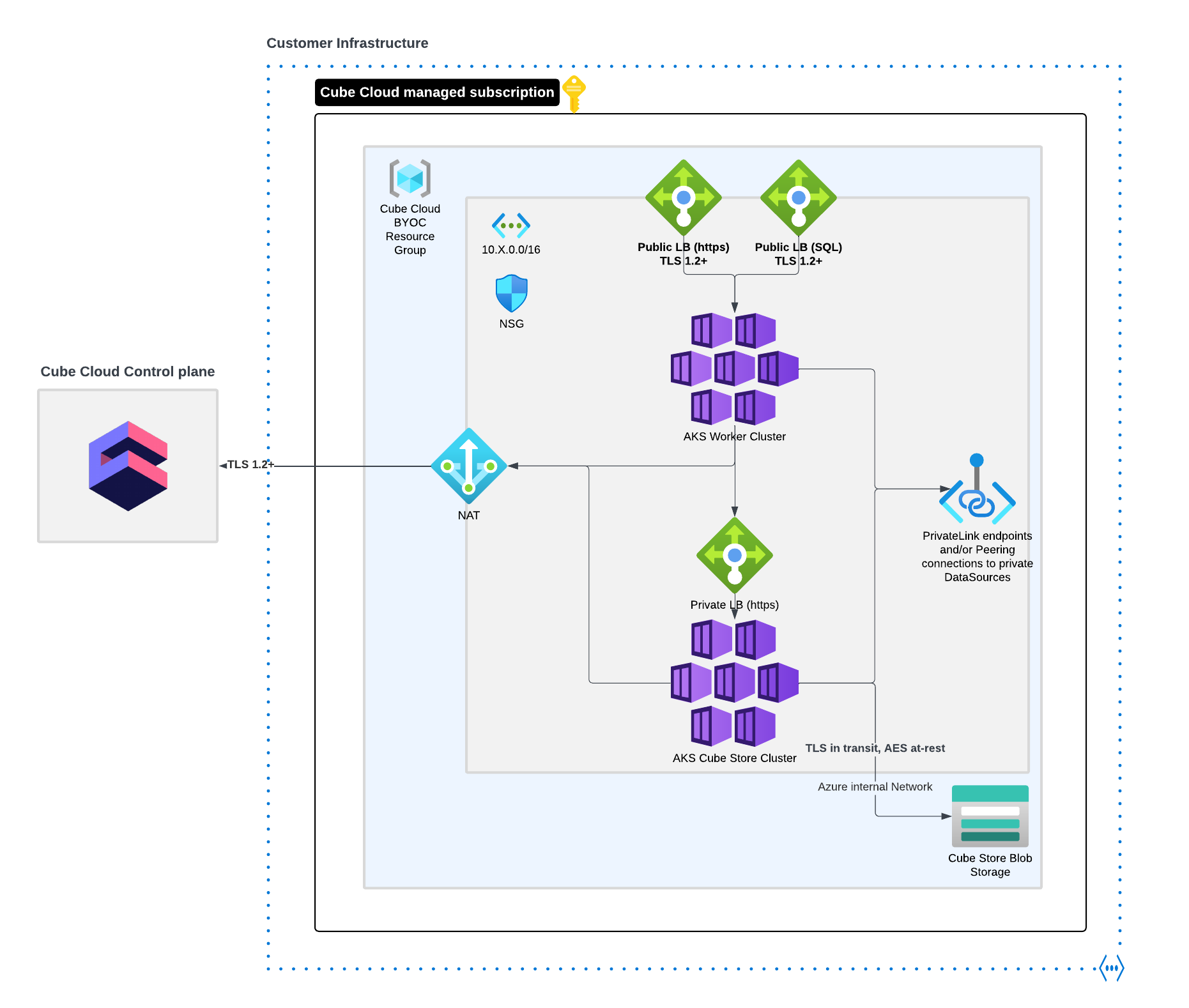 With Bring Your Own Cloud (BYOC) on Azure, all the components interacting with private data are deployed on the customer infrastructure on Azure and managed by the Cube Cloud Control Plane via the Cube Cloud Operator. This document provides step-by-step instructions for deploying Cube Cloud BYOC on Azure.