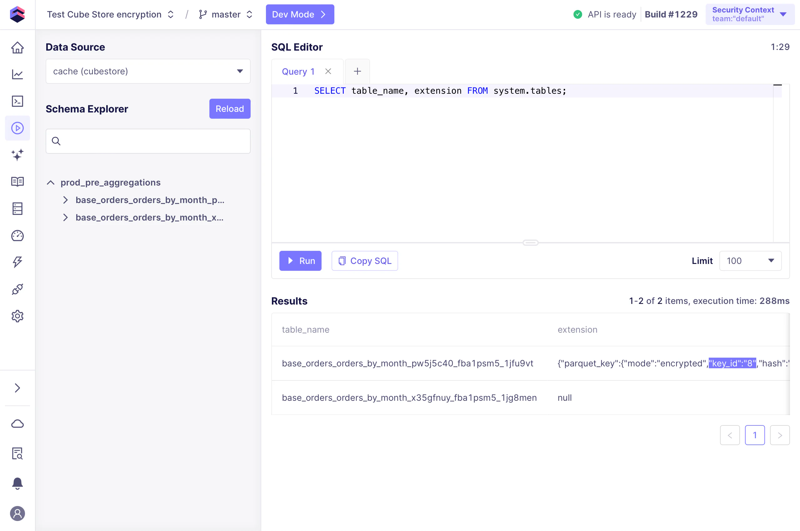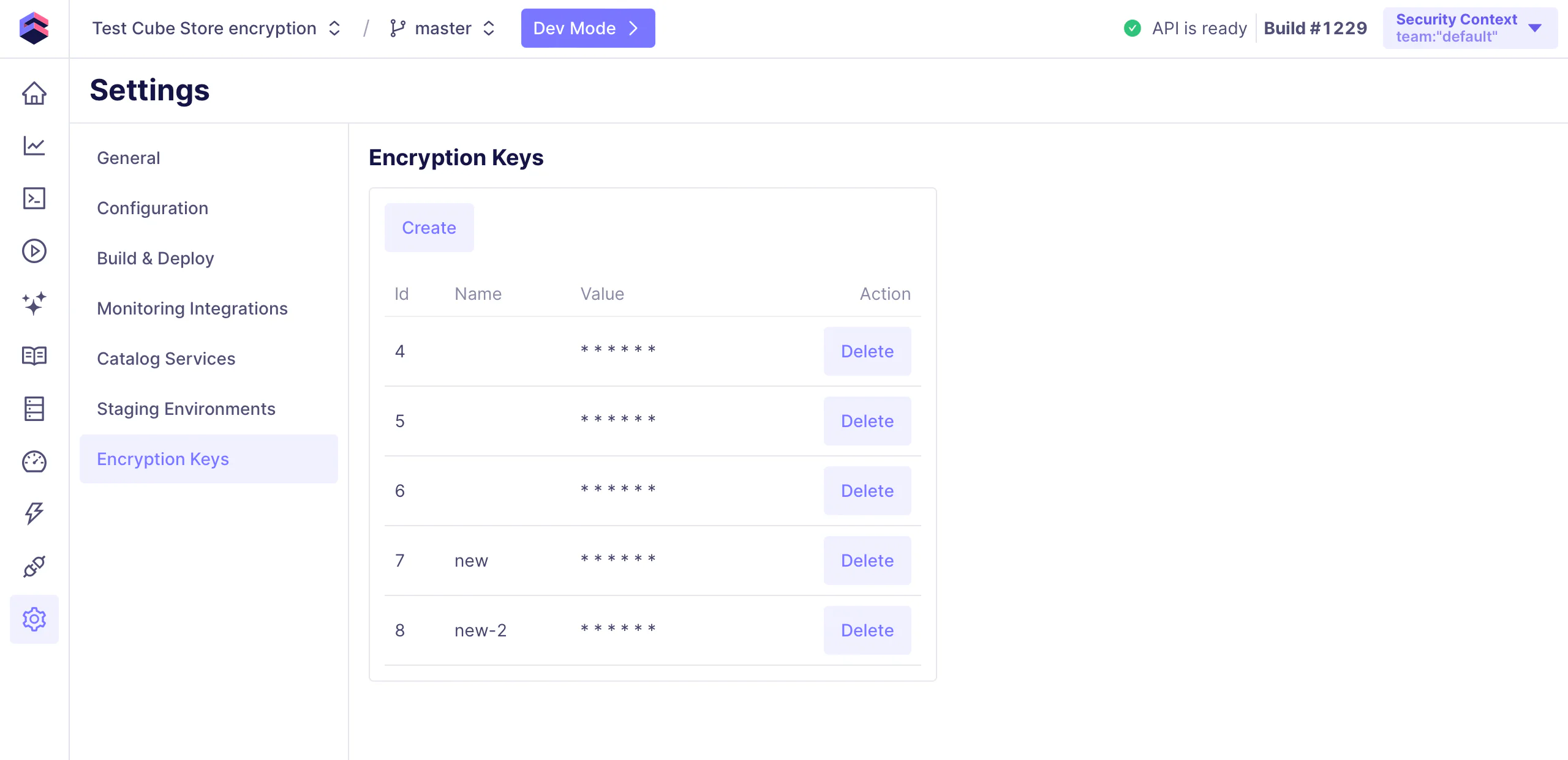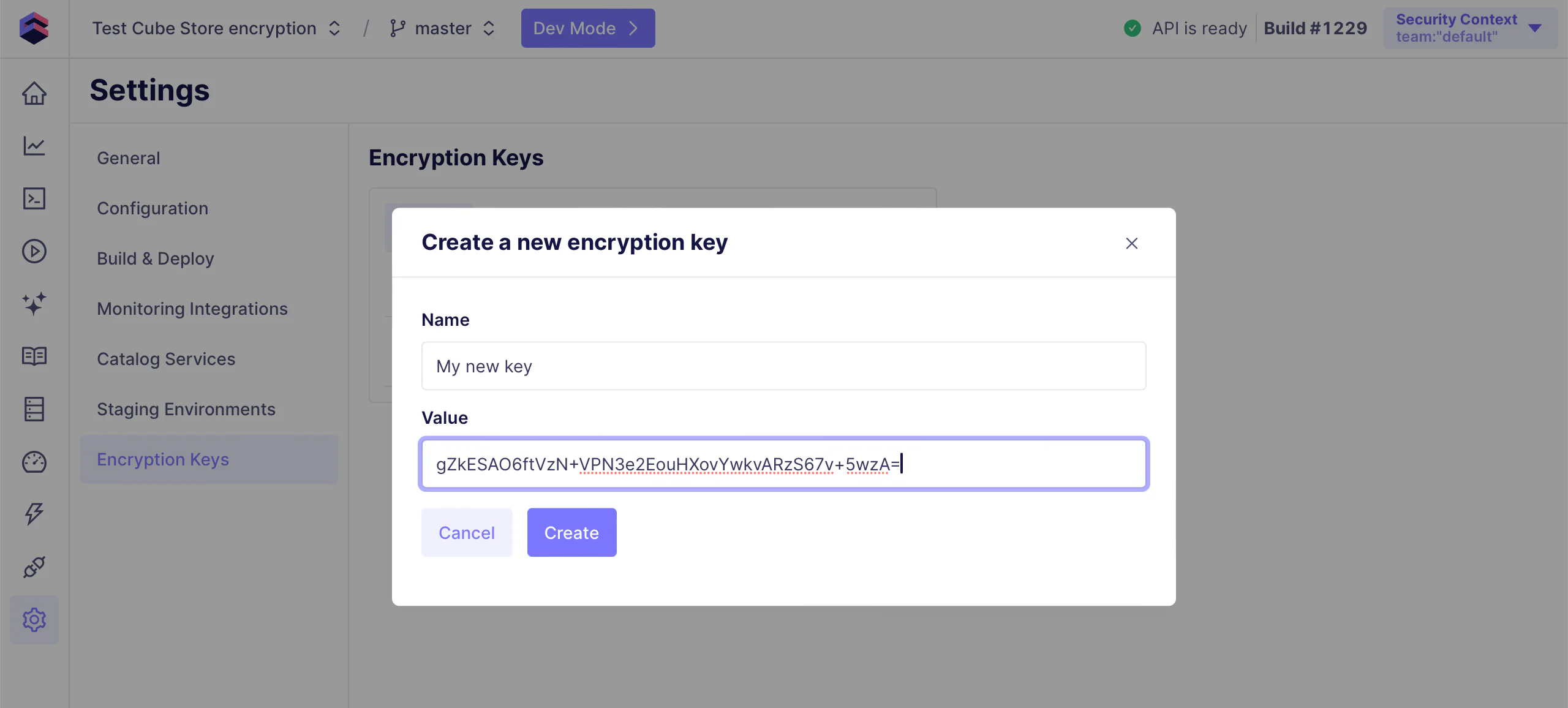 Once the first encryption key is added, Cube Store will assume that data-at-rest