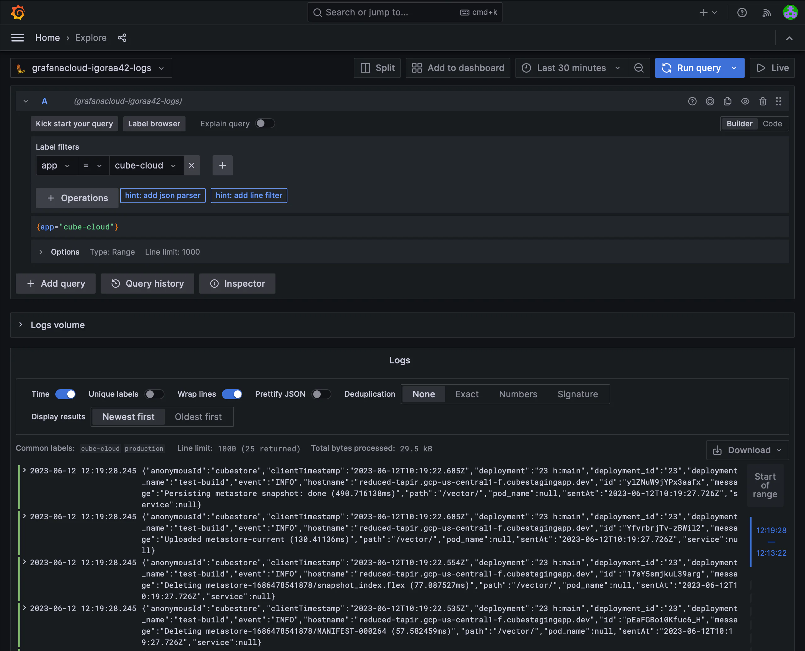 Grafana Cloud is a popular fully managed observability service. This guide demonstrates how to set up Cube Cloud to export logs to Grafana Cloud.