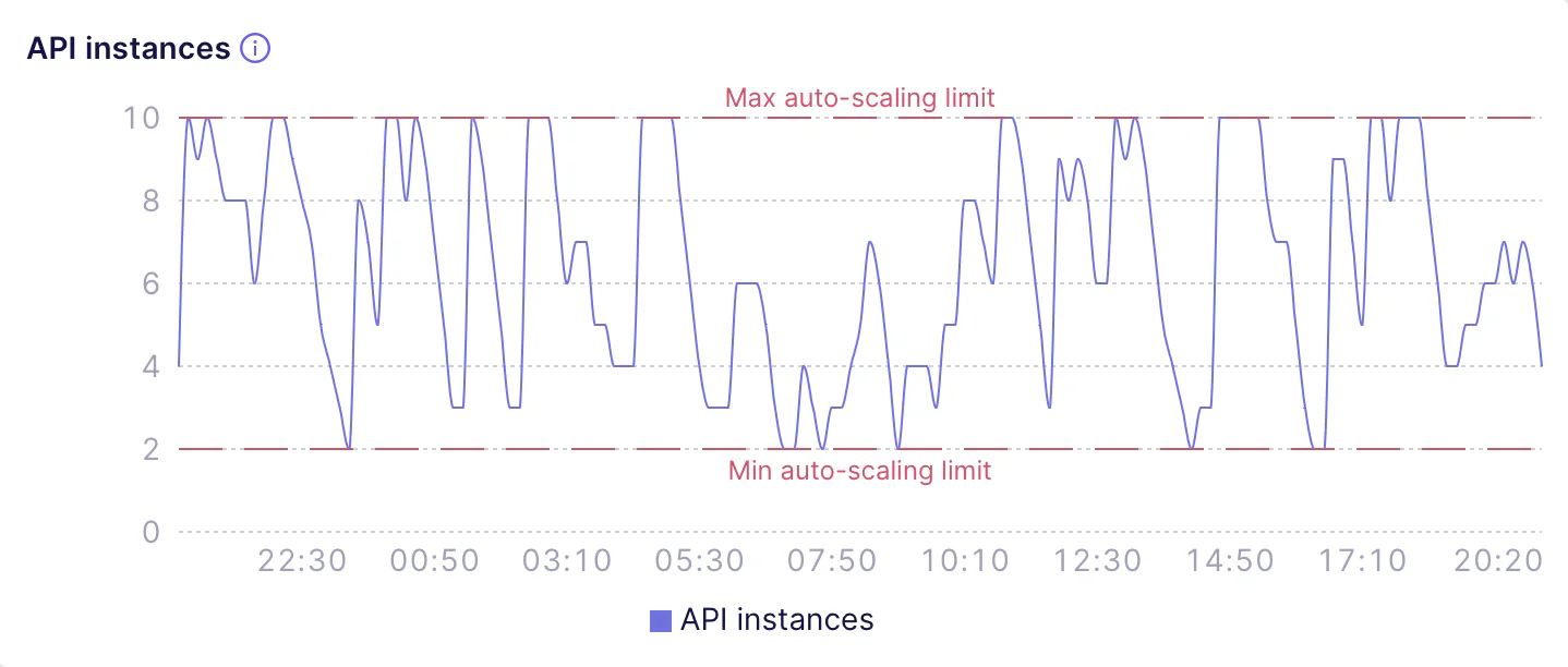 You can use this chart to fine-tune the auto-scaling configuration of API instances, e.g., increase the minimum and maximum number of API instances.