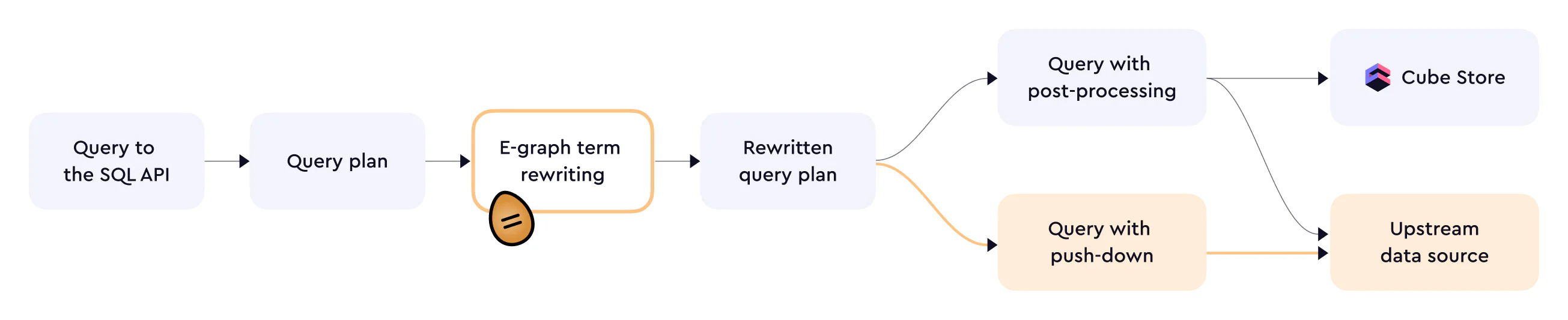 Under the hood, the SQL API uses Apache DataFusion  as its query engine. It’s responsible for query planning and execution. As part of query planning, the SQL API also uses egg  (an e-graph term rewriting  library) to analyze incoming SQL queries and find the best query plan out of a wide variety of possible plans to execute.