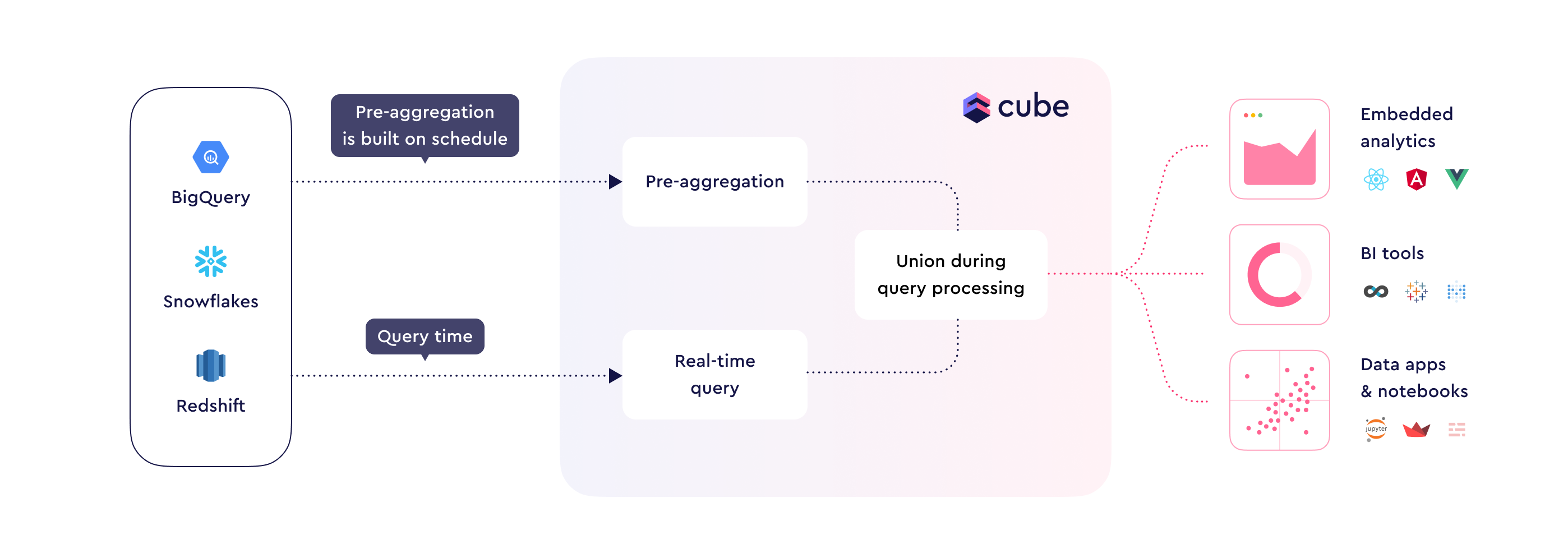 Batch data is coming from pre-aggregation and real-time data is coming from the data source.