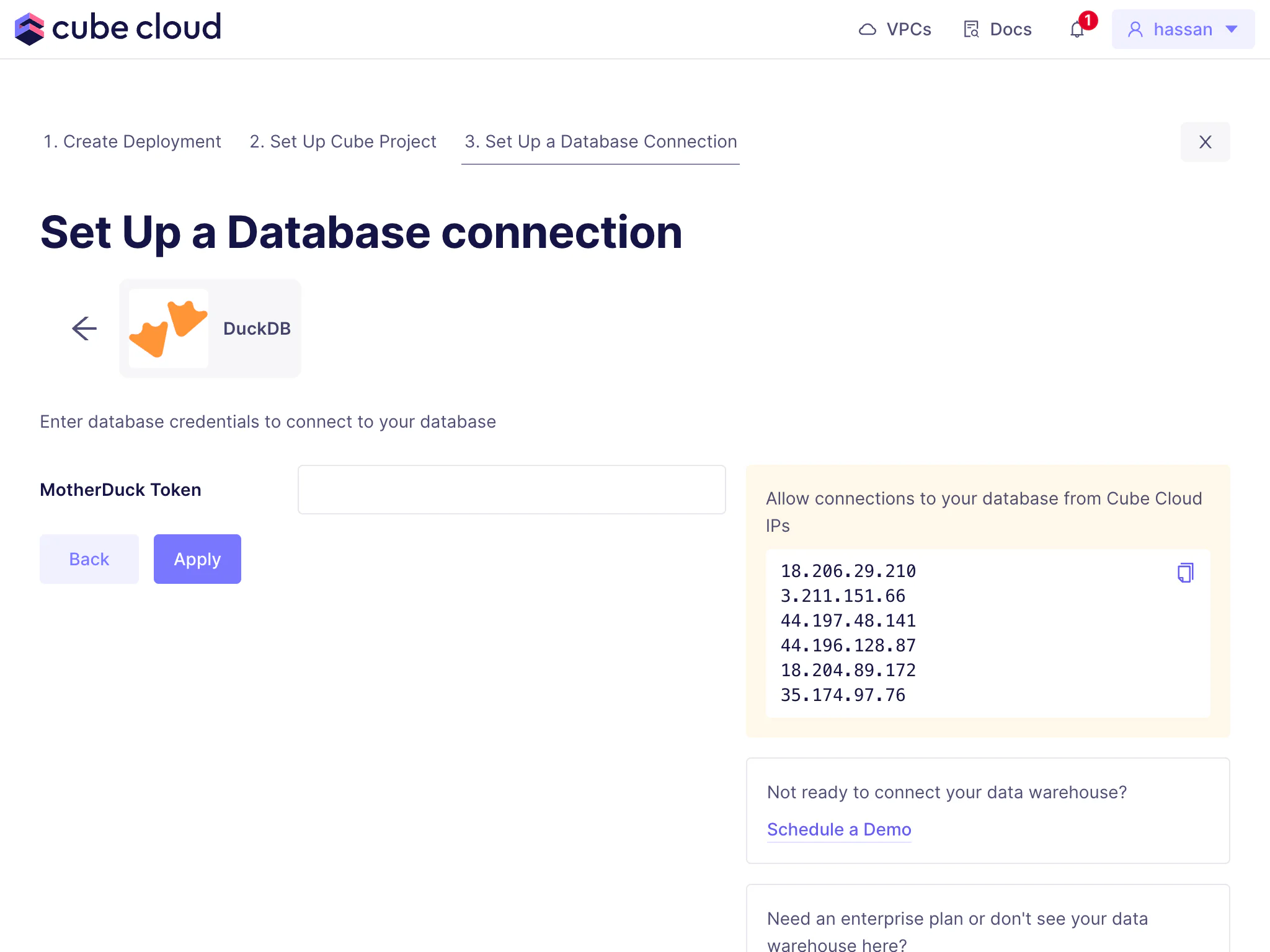 CUBEJS_DB_TYPE=duckdbCube Cloud