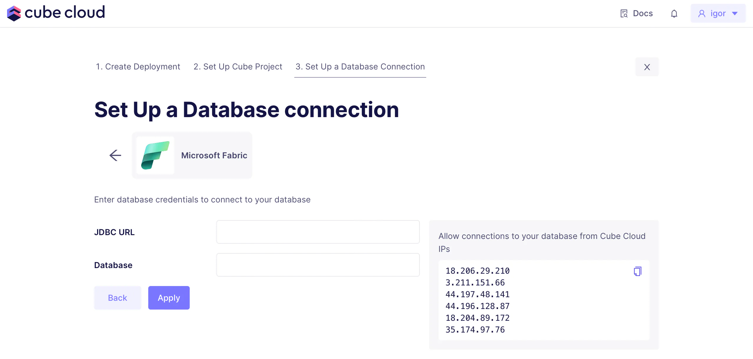 When creating a new deployment in Cube Cloud, at the step, choose .