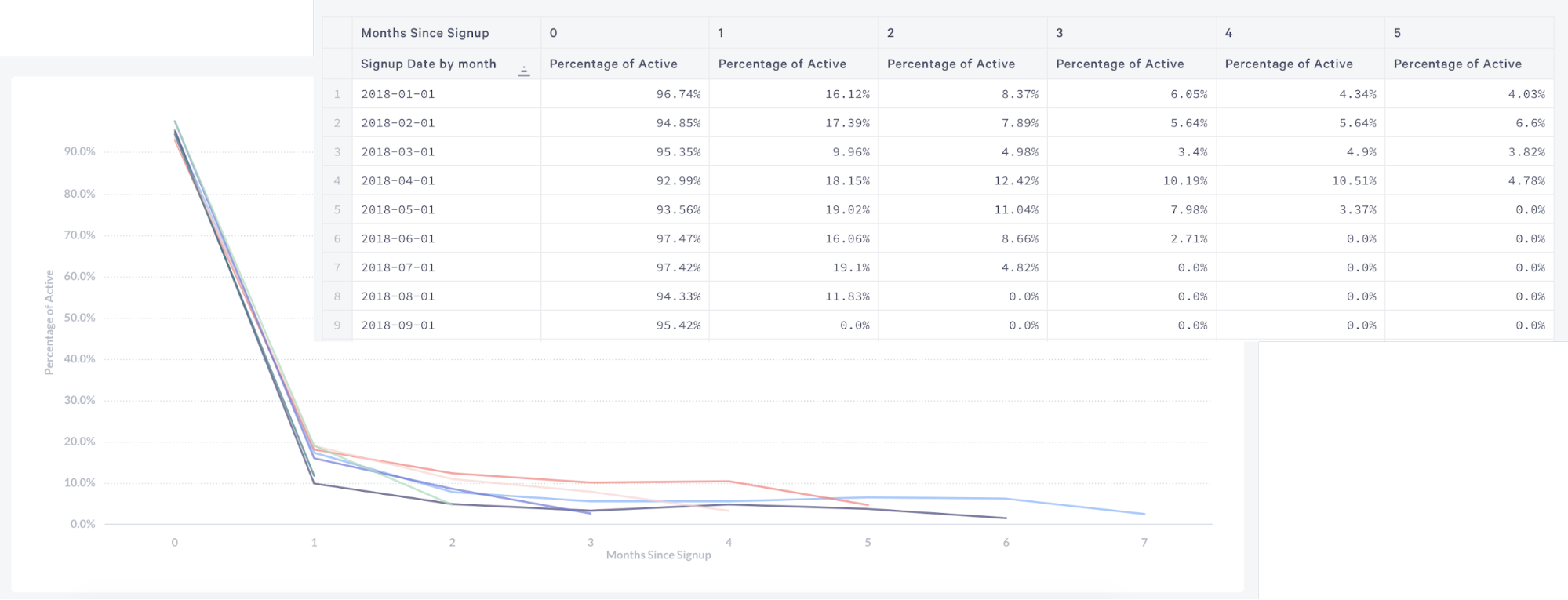 The example below shows monthly cohort retention. The same technique can be used for daily or weekly retention.